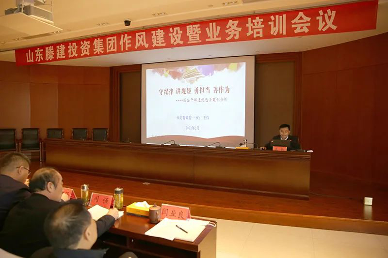 2月8日,作风建设暨业务培训活动开展第一天,集团特邀滕州市纪委监委第一纪检监察室主任王伟;枣庄市委讲师团教研室主任、教授王辉进行专题授课。王伟主任以《国企干部违纪违法案例分析》为题,对当前反腐败的形势进行了深入讲解,引用大量具体案例,分析了各类违纪违法形成原因,并勉励集团干部职工在“守纪律、讲规矩、勇