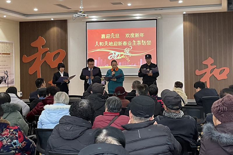 新春佳节来临之际,为丰富社区居民的文化生活,搭建居民之间相互交流沟通平台,进一步拉近居民、社区与物业之间距离。12月31日,人和天地党群服务中心举办“喜迎元旦欢度新年迎新春业主茶话会”,邀请了社区党员代表和困难家庭参加活动。